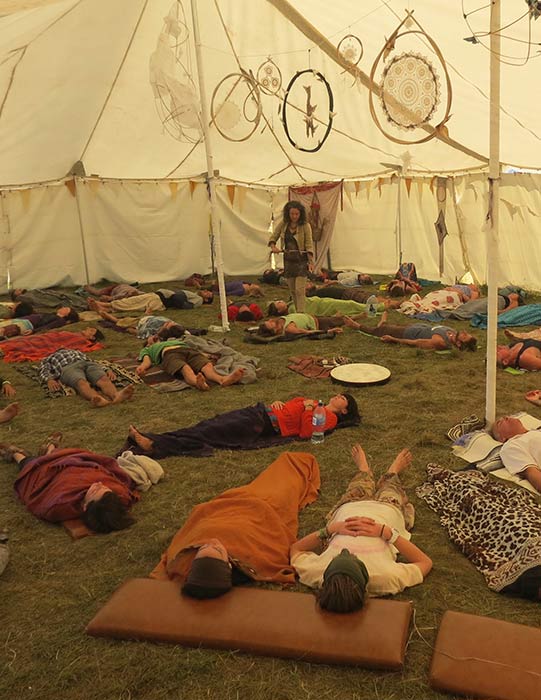 Awaken with the gentle sounds of live North American flute, hang, mbira, didgeridoo and more, crafted by the talented Chewy Wilson into a wonderful healing soundscape. Combine this with a guided breath journey by breathwork facilitators Emma Skellern and Litsa Katsoulis, interwoven with sacred song and chants and you are in for a real treat! The perfect way to start your festival workshop journey.